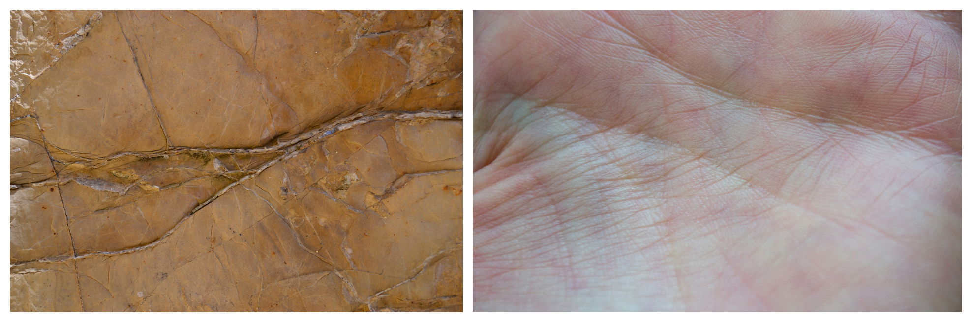 O viço da pele vívida contrapõe-se à aridez da rocha que parece evidenciar um percurso de outrora. Vestígios de vida.